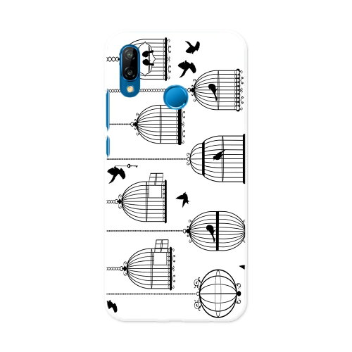 HWV32 HUAWEI P20 lite ファーウェイ ピー トゥエンティー ライト au エーユー hwv32 スマホ カバー ケース スマホケース スマホカバー PC ハードケース 013400 鳥 シルエット 鳥かご